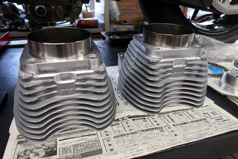 シリンダーが逆さに置かれているのは、スリーブ(クランクケースに入る部分)がとっても薄く、スリーブを下にして置いてしまうと曲がってしまう可能性があるからです!そのため、S&Sのロゴが写真では逆さになってしまうんです...
